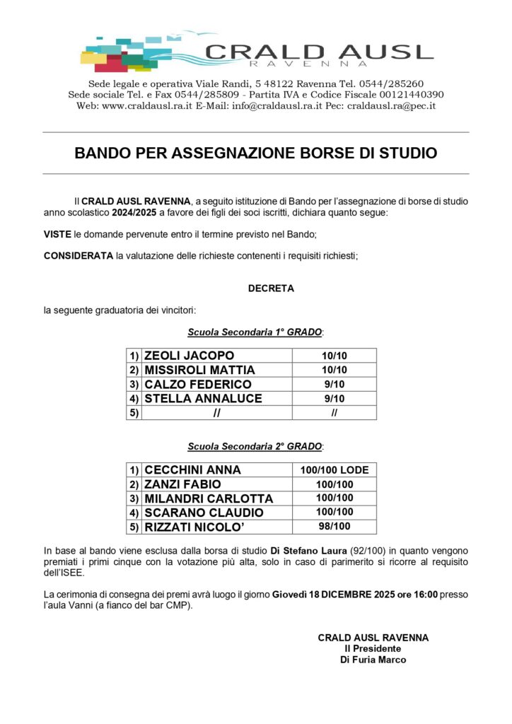 a seguito del Bando Borse di Studio per l’anno scolastico 2024/2025